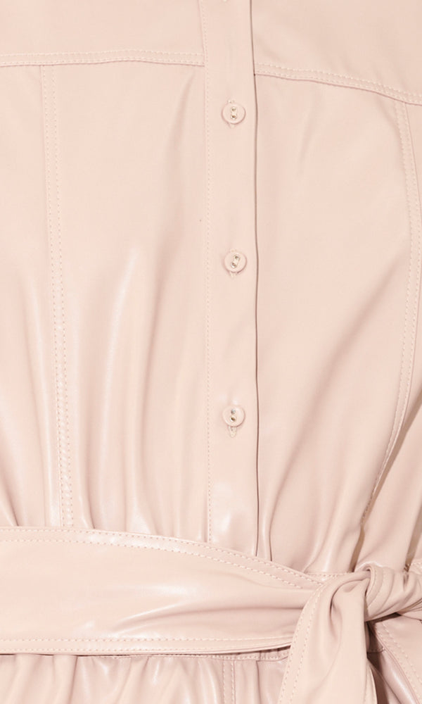 Meet our new Gilda! This faux leather take on our popular Gilda romper is just so stylish. The design features an adorable ruffle trim on the sleeves, 4 pocket styling, cuffed hem, and a removable tie belt at the waist. Styling...