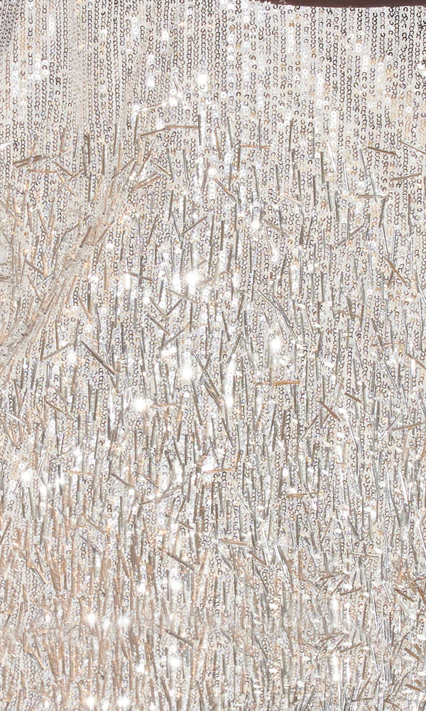 • Beaded Sequin • Self: 100% Polyester • Lining: 100% Recycled Polyester • Fully lined • Zipper at back • No stretch • Dry clean only • Imported, China • Model is 5'10" and wears a size x-small  Size Chart