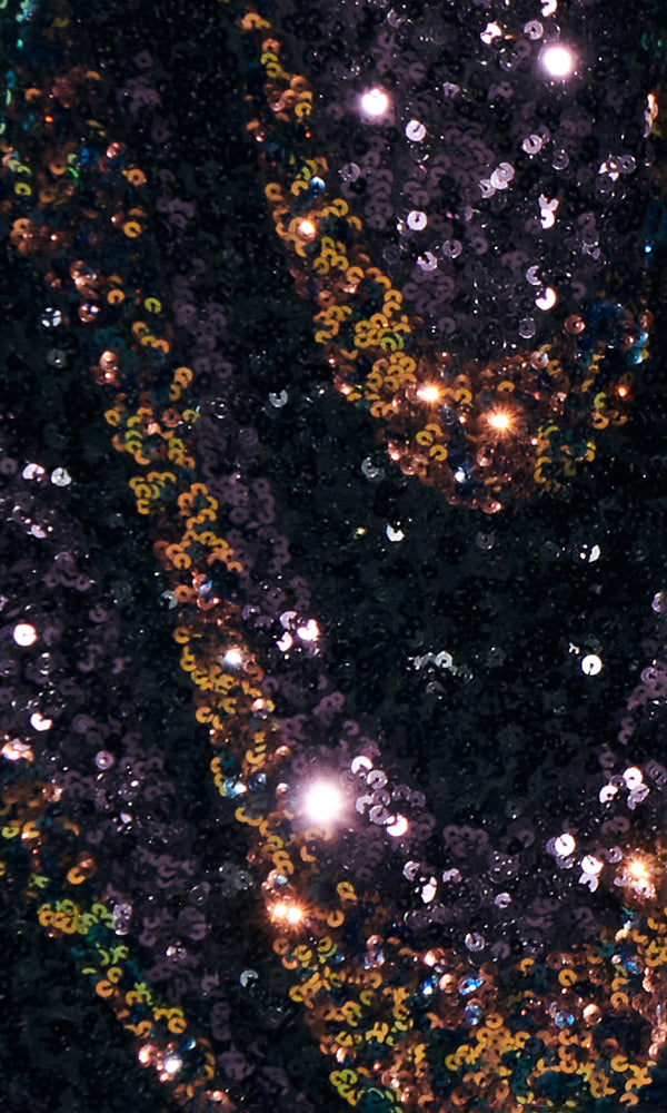 Get groovy with our Drury! This set is adorned with sequins in a swirly, lava lamp style pattern. The matching two piece is made up of a long sleeve crop top and mini skirt. Drury is perfect together, or apart....