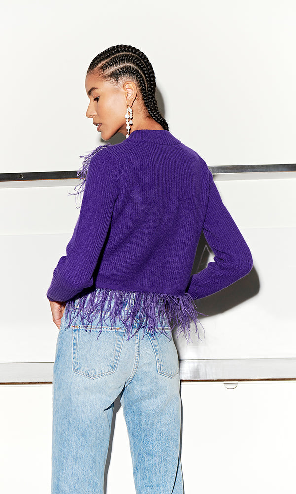 We're *ultra* obsessed with this ultraviolet top. Our Finita sweater will definitely elevate your sweater game; the soft acrylic blend keeps you cozy and the feather trim gives you a standout look. Pair with your favorite jeans or style with...