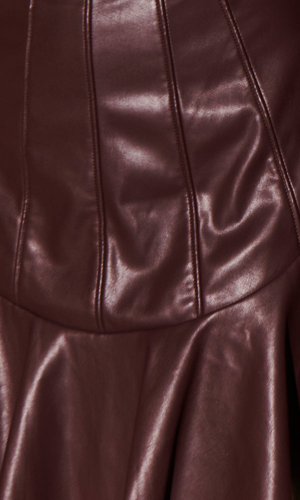 Sweet, sultry, and sleek; this set has it all. The Graydon set is cut from luxe, vegan leather. The top has a square-neck, and a cropped fit. The matching skirt is a high-rise mini. Mix and match, or pair together for...