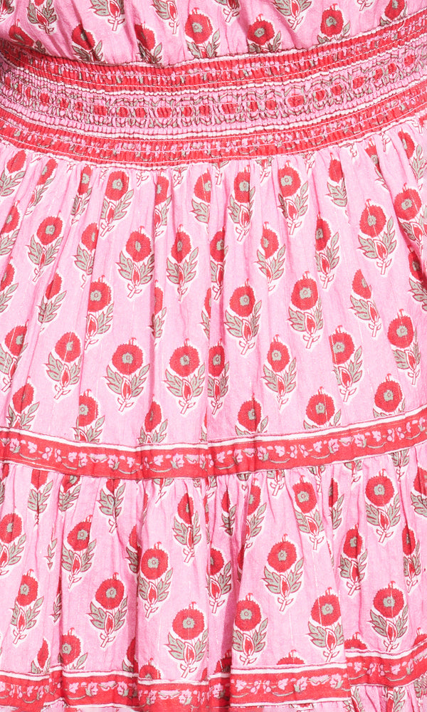 With its low neckline, puffed sleeves, and mini skirt, there's something romantic about our Greyson mini dress. Vintage style floral block print covers her, and smocking at the waist adds definition. Prepare to fall in love with this charming piece. • Zinnia Block Print • Self: 99% Cotton, 1%...