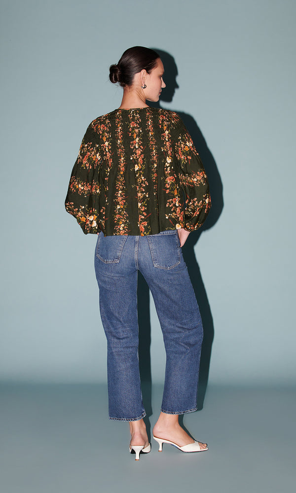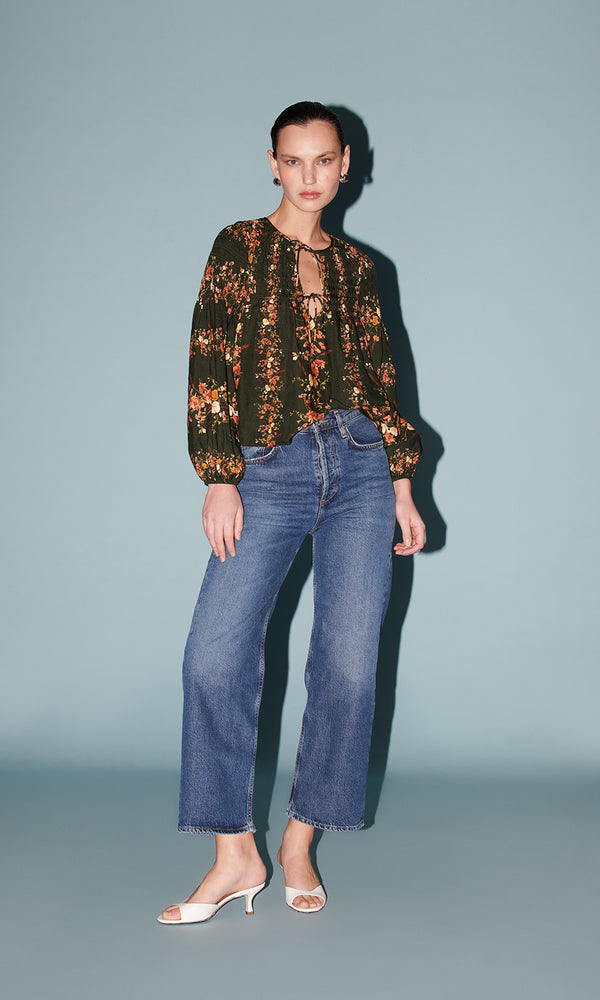 Outfit math: a statement top + simple pants= the perfect fall fit. Our Imogene is the standout top of the season; with a stripe floral print, voluminous long sleeves, and a double tie neck. Pair the top with your favorite...