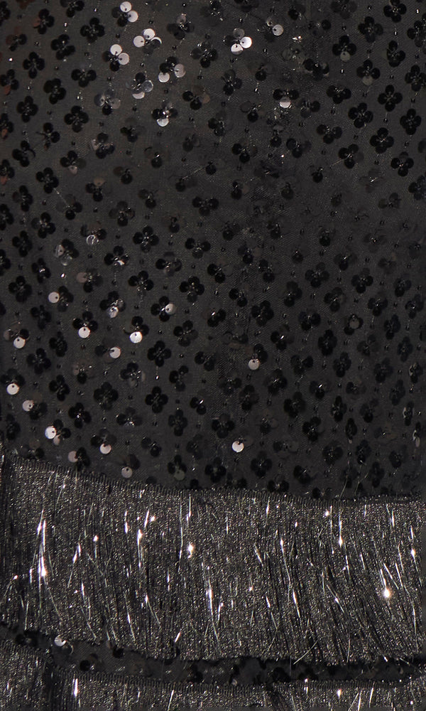 Give your LBD a revamp. Our Michelina is an elevated take on a classic little black dress, this straight neck midi is adorned with sequins in a floral motif. The front features a thigh high slit for added appeal and...