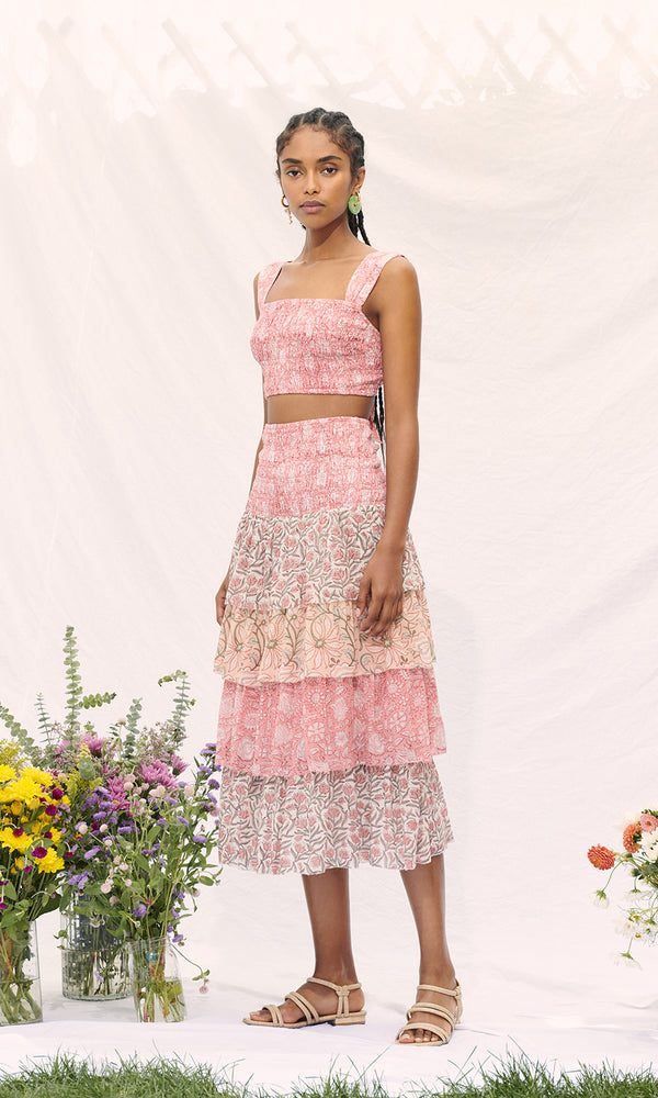 Meet the set you never knew you needed, but can't live without: the Watson set. This two piece midi skirt set is hand block printed and made up of three beautiful prints. The top is the perfect smocked crop top,...